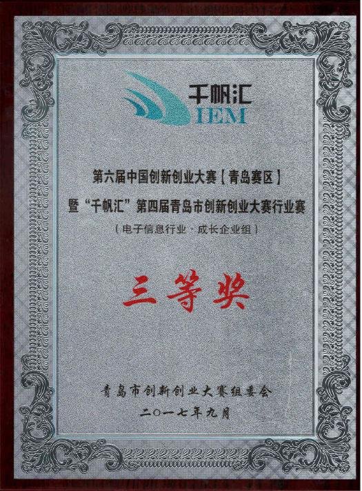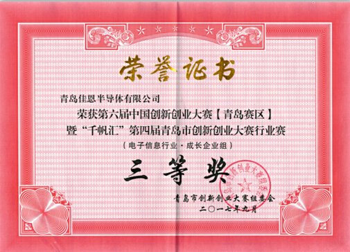 2017.8.4日,第六屆中國(guó)創(chuàng)新創(chuàng)業(yè)大賽[青島賽區(qū)]暨“千帆匯”第四屆青島市創(chuàng)新創(chuàng)業(yè)大賽完美落幕,由王丕龍、徐旭、王新強(qiáng)帶領(lǐng)青島佳恩半導(dǎo)體再創(chuàng)戰(zhàn)績(jī),榮獲企業(yè)組電子信息項(xiàng)三等獎(jiǎng)。
